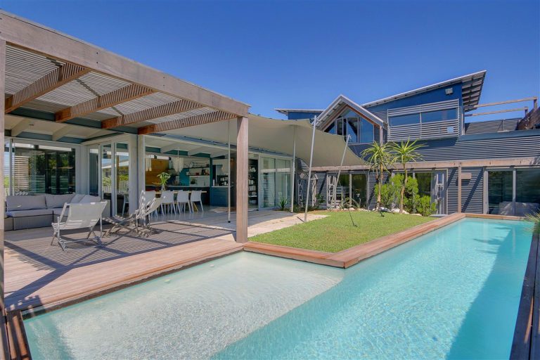 This NEW BUILD home was a modern work of art designed from scratch. Its many textures of wood, metal and cement added to its already original design with butterfly roof, roof garden and sail shade. Emphasis was placed on bringing as much nature in to the home with extensive glass allowing for beautiful natural light and extensive inside/out living space.