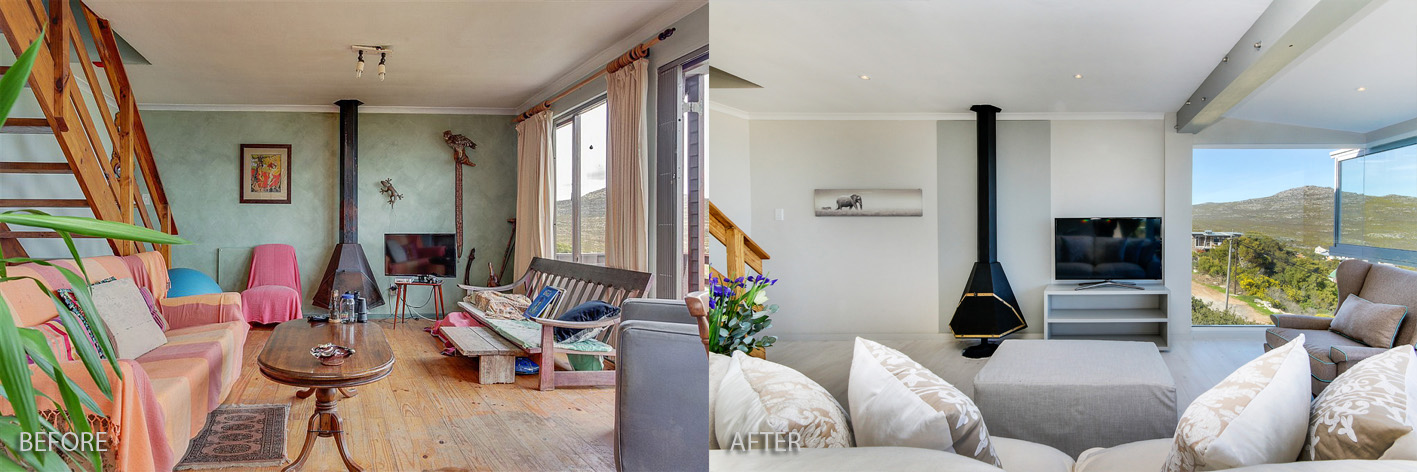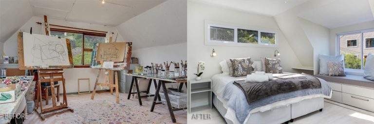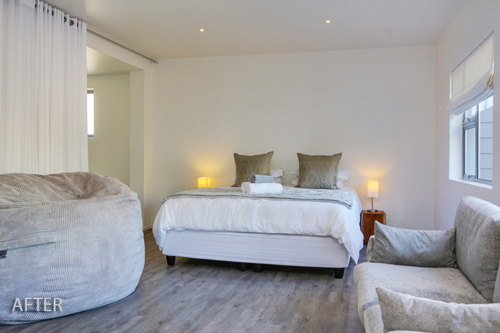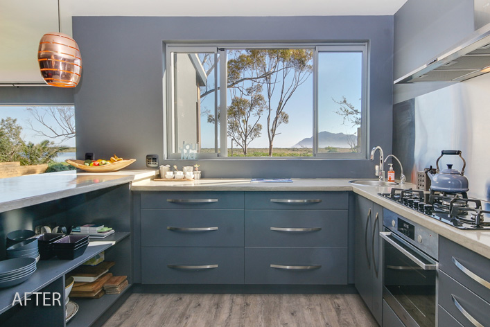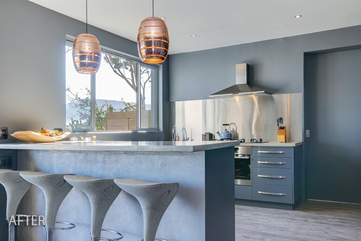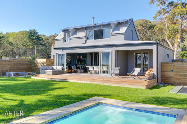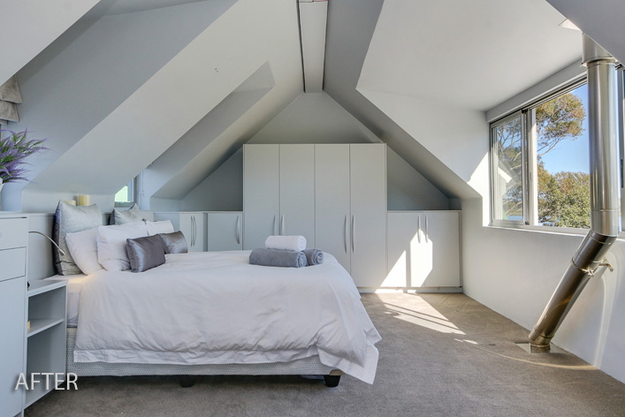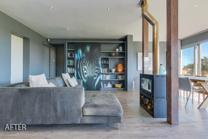 This lakeside home was so rewarding to turn about. We transformed its outdated cottage mix of colours to a modern, clean line space while keeping its homely elements. Views were maximised by enclosing the existing porch with large sliding glass doors, extending the living area with a new deck and adding large dorma windows upstairs. The internal dark tones allowed for the nature of the exterior to be accentuated, thus making the breathtaking outlook the focus.
